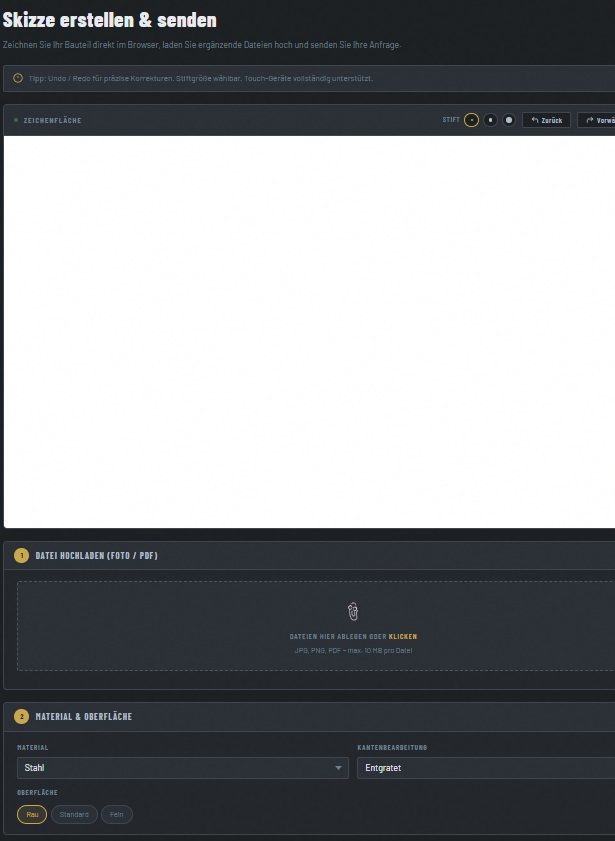 Ab sofort ist es möglich mit einem Touchfähigen Bildschirm, oder einem Tablet/Ipad eine Skizze direkt am Bildschirm zu erstellen und sofort zur Angebotsermittlung an Drehteile Nord zu versenden. Es geht zwar auch mit dem Finger aber wir empfehlen hierfür einen Stift zu nutzen.
